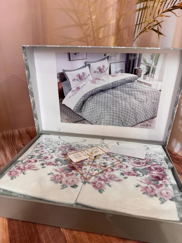 Комплект постельного белья выполнен из высококачественного микро сатина. 📎На ощупь ткань мягкая 📎не вызывает аллергических реакций 📐Размер евро: Простынь 245 х 250- 1шт пододеяльник 200 х 230-1шт наволочки 50 х 70-2 шт. 🛍️Упаковано в подарочную коробку 💵Цена 1379 грн