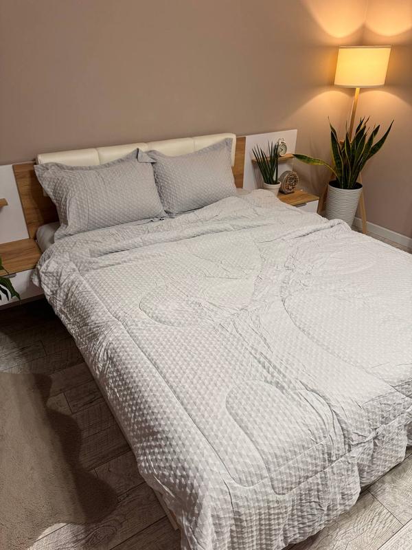 Набор постельного белья с одеялом размера евро из материала сатин - это элегантное и комфортное решение для спальни. Сатин изготавливается из хлопка, но по специальной технологии переплетения нитей, благодаря чему он имеет шелковистый блеск и гладкую текстуру. Он прочный, долговечный и очень приятный к телу. Особенности такого набора: 1. Размер евро: Простирадло 220х240 см Пододеяльник 200х230 см Наволочки 50х70 см 2 шт 2. Одеяло: набор включает в себя само одеяло, что добавляет удобства, так как вы получаете все необходимое для комфортного сна. 3. Сатин: Это прочный, мягкий и дышащий материал, который хорошо держит цвет и форму даже после многочисленных стирок. Он идеально подходит для любого сезона, поскольку охлаждает летом и сохраняет тепло зимой. 💵Цена - 1659 грн