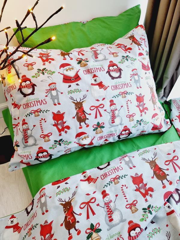 Новогоднее постельное белье, отличный подарок к праздникам! Качественный пошив, ручная работа, каждый комплект создается с любовью и вниманием к деталям, это не фабричный массовый пошив. ТКАНИ БЯЗЬ - Хлопок Полуторный – 950 грн Двухспальный - 1050 грн Евро – 1160 грн Семейный - 1450 грн --- Стандартные размеры: Комплект постельного белья ПОЛУТОРНЫЙ: 1. Простыня — 150*220 см 2. Пододеяло на молнии — 150*215 см 3. Наволочки на молнии, размеры по выбору - 50*70 или 70*70 см в комплекте 2 шт. 4. Подарочная упаковка Комплект постельного белья Двухспальный: 1. Простыня — 180*220 см 2. Пододеяло на молнии — 180*215 см 3. Наволочки на молнии, размеры по выбору - 50*70 или 70*70 см в комплекте 2 шт. 4. Подарочная упаковка Комплект постельного белья ЕВРО: 1. Простыня - 220*240 см 2. Пододеяло на молнии - 200*220 см 3. Наволочки на молнии, размеры по выбору - 50*70 или 70*70 см в комплекте 2 шт. 4. Подарочная упаковка Комплект постельного белья СЕМЕЙНЫЙ: 1. Простыня - 220*240 см 2. Пододеяло на молнии - 150*215 см - в комплекте 2 шт. 3. Наволочки на молнии, размеры по выбору - 50*70 или 70*70 см в комплекте 2 шт. 4. Подарочная упаковка По желанию - пошив простыни на резинке ПРЕИМУЩЕСТВА: – Натуральная ткань – яркие цвета устойчивы при стирке – отсутствие усадки при стирке – не скатывается – Плотность ткани - + 125-130 г/м2. Постельное белье из бязи отличается доступностью и практичностью!