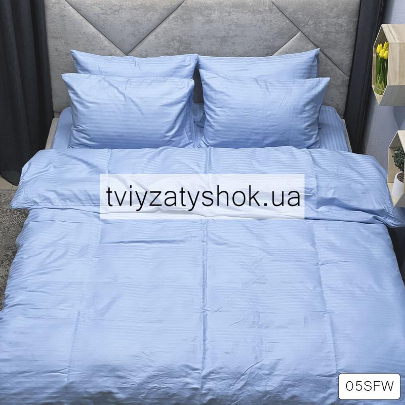 Евро комплект постельного белья из ткани страйп сатин, небесно голубой цвет, 100% хлопок