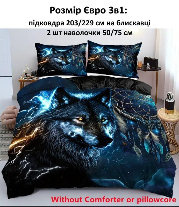 3в1 постельное белье пододеяльник + 2 наволочки с рисунком 2d эффект волк ловец снов фетиш...