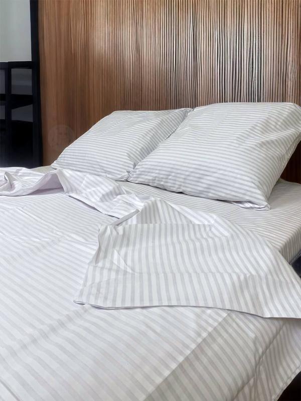 Комплект постельного белья в полоску, постель в полоску, белый, 100% хлопок