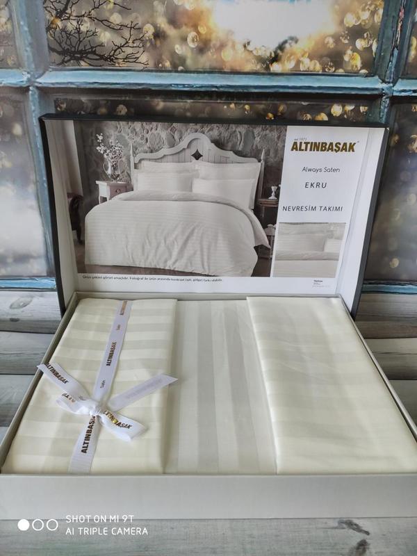 Постельное белье полуторное сатин страйп Altinbasak Ekru Размер: полуторный Пододеяльник: 160х220 см. Простынь: 180х240 см. Наволочки: 2 шт., 50 х 70 см; Ткань: сатин страйп. Состав: 100% хлопок Производитель: Турция Постельное белье изготовлено из 100% натурального хлопка. Комплект упакован в красивую подарочную коробку. Ткань сатин-страйп с атласными полосками. Мягкое и гладкое на ощупь, выглядит дорого и красиво. Шикарное постельное белье из сатин-страйпа, станет украшением вашей спальни. ##