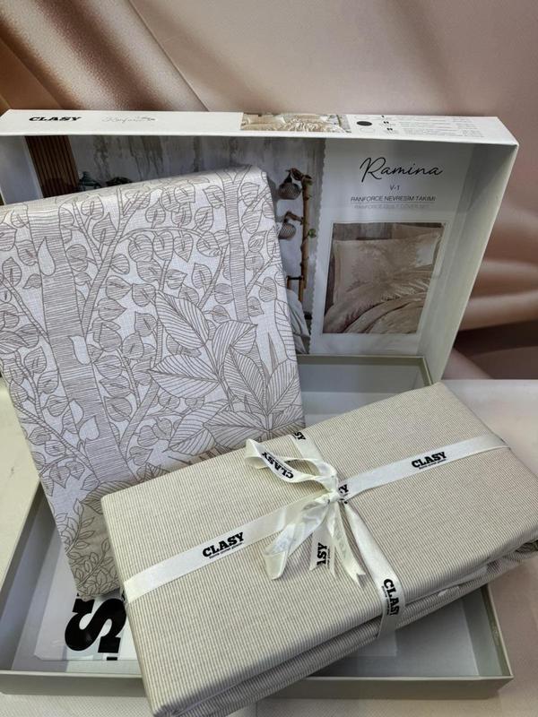 Постельное белье ранфорс люкс евро размер 200 на 220 см Clasy Ramina Размер евро. Комплектация: Пододеяльник 200-220см Простыня 240-260см Наволочки 2 шт. размер 50-70см Постельное белье изготовлено из 100% натурального хлопка, ткань высокого качества, приятная на ощупь. Комплект упакован в красивую подарочную коробку. Постельное белье из ранфорса - это надежное качество, ткань которая будет служить вам годами.. Clasy - это известная фабрика в Турции. Вся ее продукция сертифицирована и качество на высоком уровне. Заказывайте прямо сейчас- ************* ##
