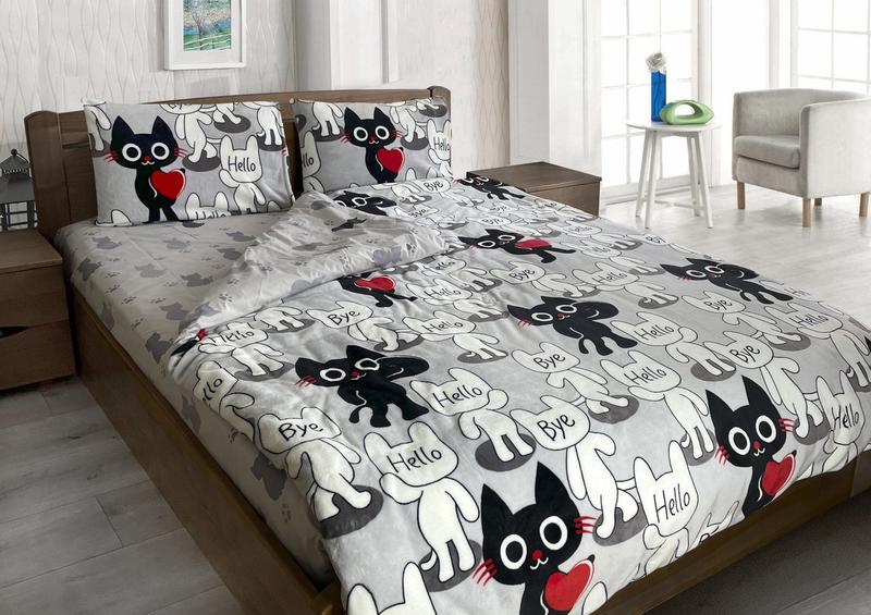 Комплект постельного белья микрофибра+бязь тет-@-тет толстый кот (полуторный размер)