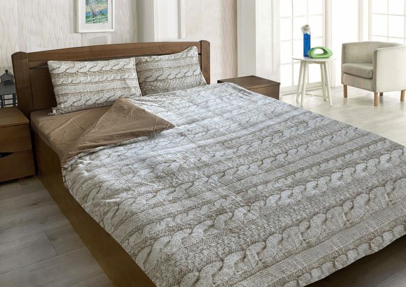 Комплект постельного белья микрофибра+бязь тет-@-тет вязанка бежевая (полуторный размер)