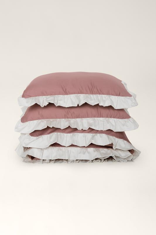 Постельное белье с рюшами сатин розовое с белым altea, benihome евро семейное полуторное д...