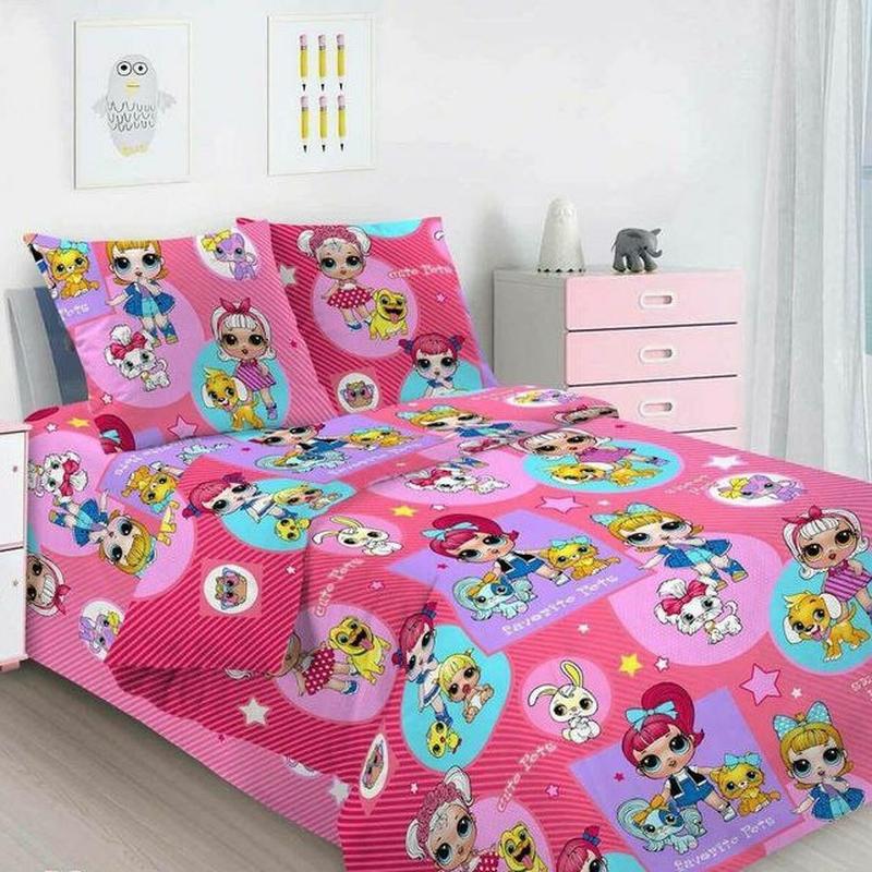 Комплект постельного белья полуторный 150×220 см gold lux бязь, розовый для девочки 1587