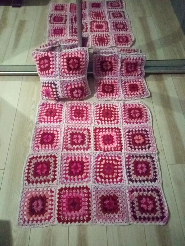 Набор,ковым и два чехла для подушек, которые ломким 87 на 87,чехлы 40 на 40,очень красивые
