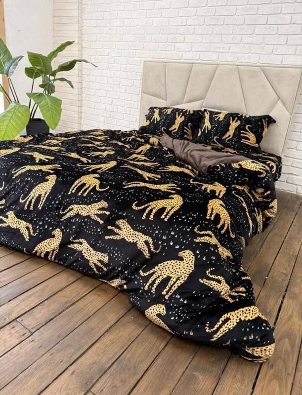 Постільна білизна комплект плюш леопарди комплект постельного белья плюш
