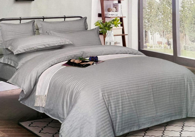 Постельные комплекты из турецкого страйп-сатина – серый, 100% хлопок!