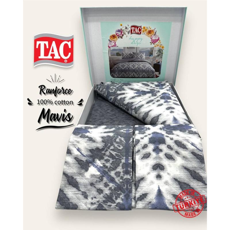 Производитель: Tac, Турция. Материал: ранфорс, 100% хлопок, Плотность ткани: 142 TC Размер и комплектация: пододеяльник 200x220, простынь 240x260, Наволочки в тон пододеяльника: 50x70 - 2 шт, Упаковка: Фирменная коробка Постельное белье ТАС производится в Турции, на фабрике Zorlu Textile Groop. Ткань – ранфорс, 100% хлопок. Ранфорс – натуральная хлопчатобумажная ткань, отличающаяся практичностью. Комплекты постельного белья из ранфорса гладкие, мягкие и долговечные.