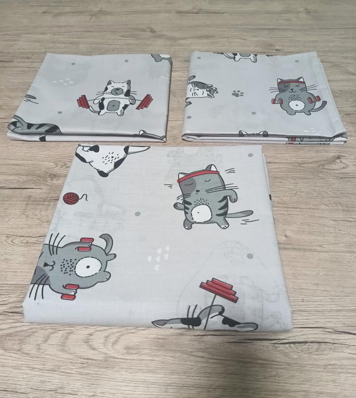 Комплект из 1,5 спальной простыни и две наволочки 50*70 см. Ткань бязь, состав 70-80% хлопок и 20-30% полиэстер, основной фон - свет серый. Простирадло 150 см на 220 см Наволочки 50 см на 70 см Температура стирки 30-40°С На простыне с изнаночной стороны незначительный дефект (если можно так сказать) ткани: едва заметно или серая или свет коричневого маленького пятнышка, похожий на фабричную прокраску, показано на последнем фото, на лицевой стороне не видно.