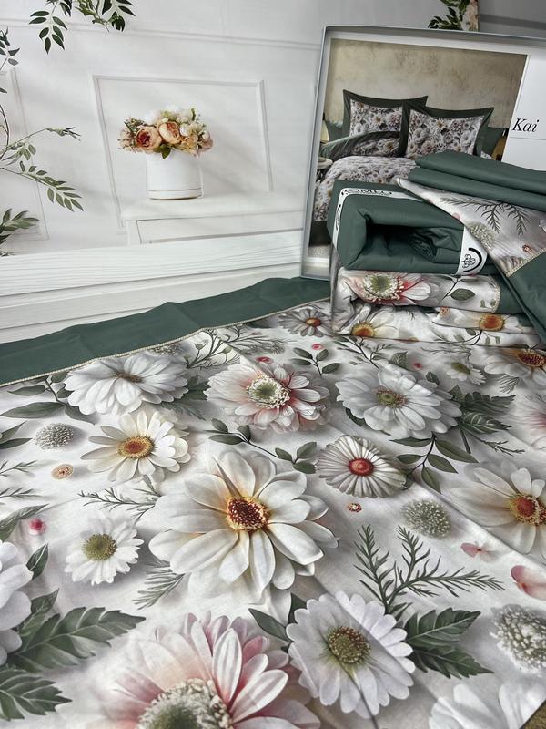 Евро размер. постельное белье 100% хлопок. ткань: поплин. ромашки, цветы, зеленый цвет. ка...