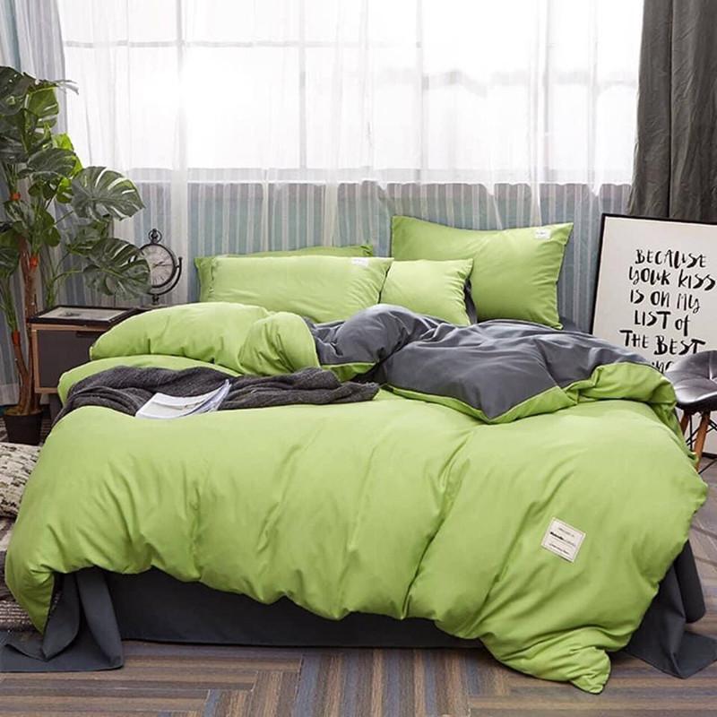 Постельное белье дуэт фисташка/антрацит ранфорс meriset - семейный на резинке полуторний н...