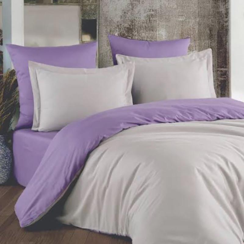 Постільна білизна дует сірий/лавандовий настрій ранфорс meriset - євро на резинці