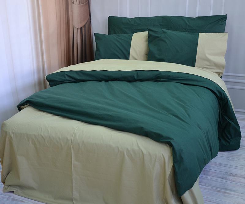 Постельное белье premiere темнозеленое/светлая оливка ранфорс meriset - семейный на резинк...