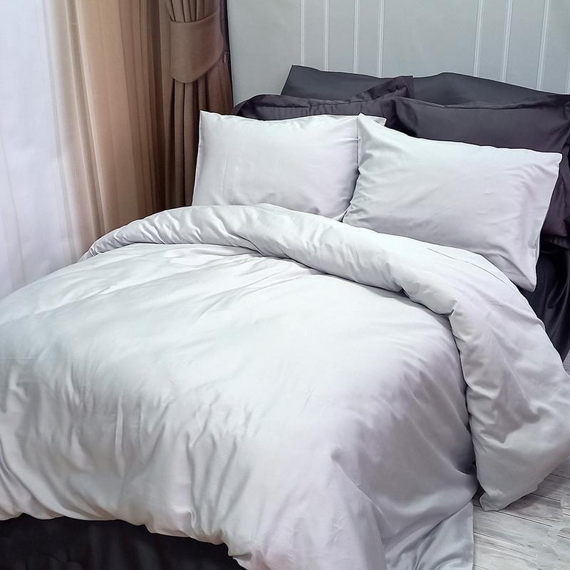 Постельное белье дуэт platinum/anthracite premium сатин meriset - семейный на резинке євро...