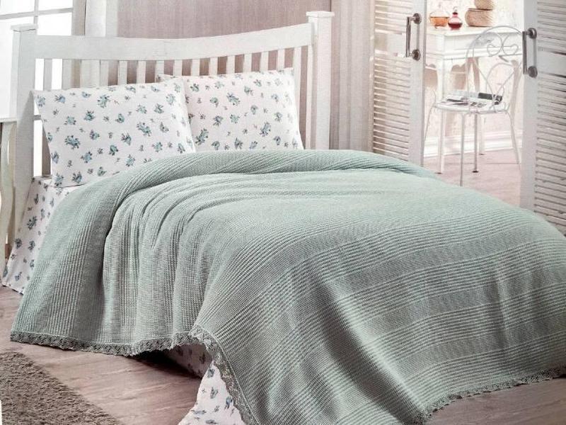 Комплект хлопкового постельного белья ранфорс с летним вафельным покрывалом-пледом евро ра...