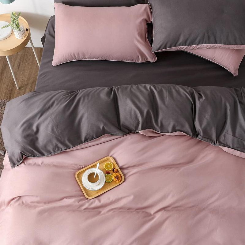 Постельное белье дуэт пудра/антрацит ранфорс meriset - семейный на резинке сімейний