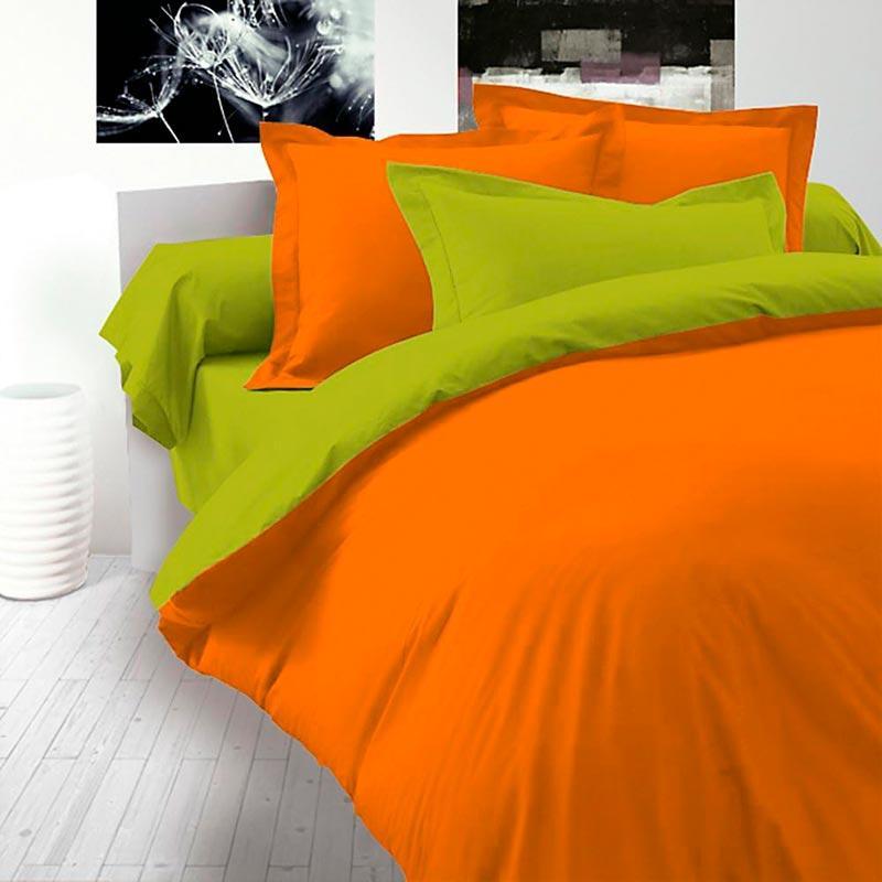Постельное белье дуэт оранжевый/фисташка ранфорс meriset - семейный на резинке сімейний