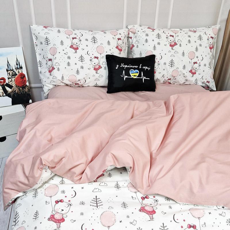 Постельное белье пудровая шарика ранфорс meriset - семейный на резинке полуторний на резин...