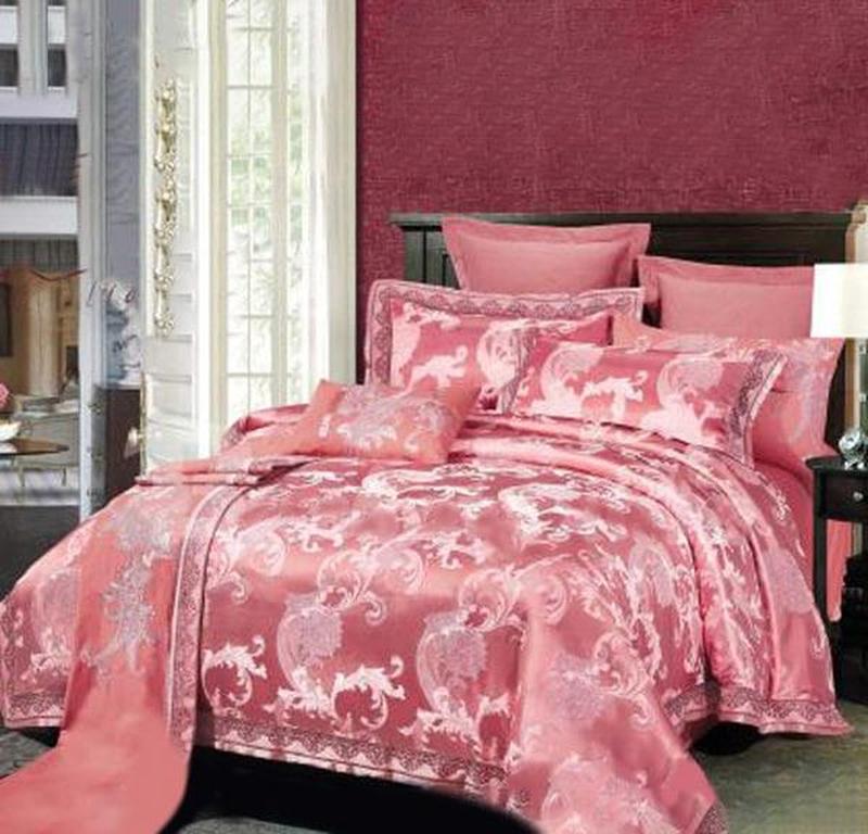 Комплект постельного бельея поплин-жаккард Розовый Роскошный комплект постельного белья выполнено из высококачественного поплин с изысканным жаккардовым рисунком подчеркнет роскошь и великолепии Вашей спальни, а также станет достойным подарком на любое торжество. Постельное бельё выдерживает большое количество стирок, сохраняя свой цвет и качество. Характеристики: Ткань основная: жаккард Состав: 70% хлопок, 30% ПЭ Плотность: 145 г/м2 Ткань компаньон: поплин Состав: 100% хлопок Плотность: 120 г/м2 Упаковка: ПВХ Размер: - Полуторный: пододеяльник 150х215см - 1 шт, простынь 160х220см - 1 шт, наволочки 50х70см - 1шт, доп наволочки жаккард 50х70см или 70х70см - 1шт - Двуспальный: пододеяльник 180х215см - 1 шт, простынь 200х220см - 1 шт, наволочки 50х70см - 2шт, доп наволочки жаккард 50х70см или 70х70см - 2шт - Евро: пододеяльник 200х220см - 1шт, простынь 220х220см - 1 шт, наволочки 50х70см - 2шт, доп наволочки жаккард 50х70см или 70х70см - 2шт - Семейный: пододеяльник 150х220см - 2 шт, простынь 220х220см - 1 шт, наволочки 50х70см - 2шт, доп наволочки жаккард 50х70см или 70х70см - 2шт Дополнительные услуги: Простыня на резинке + 70 грн.; Простыня на резинке по всему периметру + 110 грн.; Вшив змейки в пододеяльник + 100 грн.; Вшив змейки в наволочках + 60 грн. за шт.; Картонная подарочная коробка + 60 грн * Отправка 2-4 рабочих дня