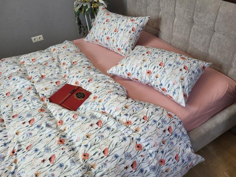 Постельное белье фланель полевые цветы розовый двуспальный евро
