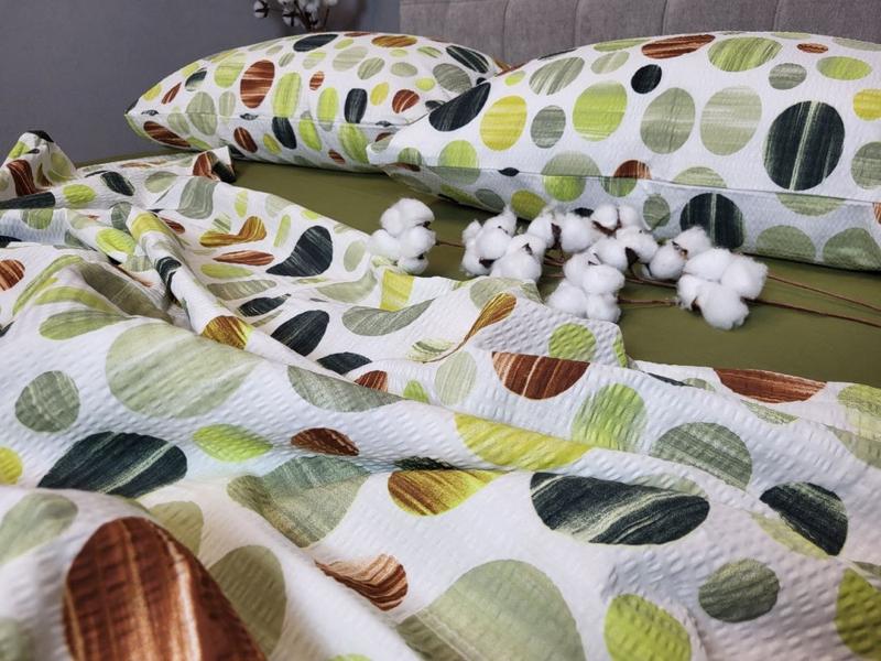 Постельное белье ранфорс-жатка карамелька хаки микс двуспальный евро