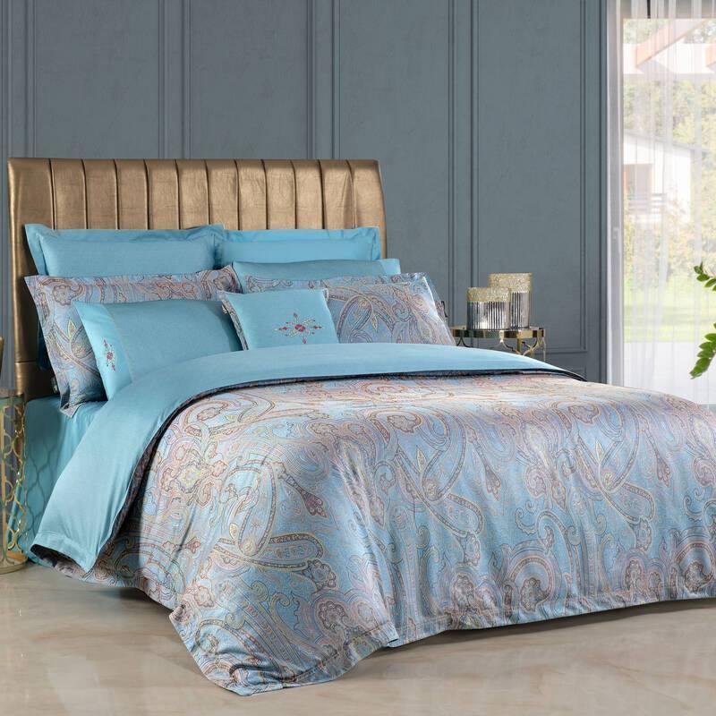 Sarev Athena Mavi - жаккардовый сатин Delux 500 ТС, 100% органический хлопок, изысканный бирюзовый дизайн, OEKO-TEX, подарочная упаковка. - Бренд: Sarev, серия ELITE. - Тканина: 100% органический хлопок, плотность 500 ТС. - Дизайн: Современный, орнамент. - Размер: Двуспальный Евро. - Комплектация и размеры: - Пододеяльник: 200х220 см (1 шт.) - Простирадло: 260х280 см (1 шт.) - Наволочки: 50х70 см (4 шт.) - Декоративна наволочка: 40х40 см (1 шт.) - Страна производитель: Турция.