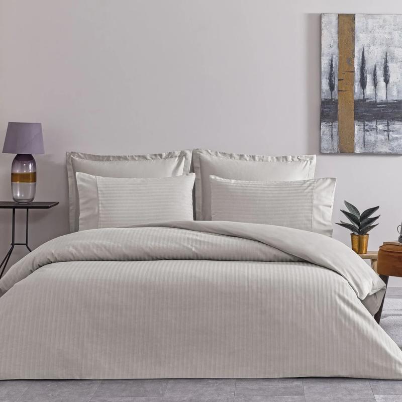 Двоспальний king size комплект tac premium basic grey сатин-stripe