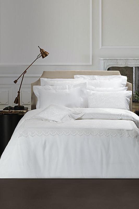 Белый евро комплект Valeron Louise White Жаккард с изящным кружевом и деликатным узором. Торговая марка – Valeron, компании Zorlu (Турция) Ткань - Жаккард, египетский хлопок высочайшего качества Плотность – 124 нити на квадратный сантиметр (310 TC) Пододеяльник - 200×220 см Простирадло – 270×260 см Наволочка – 50×70 см (4 шт) Подарункова сумка Valeron