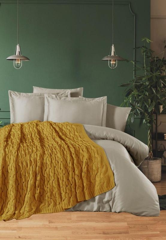Двуспальный евро комплект с вязаным покрывалом first choice tango ocher сатин