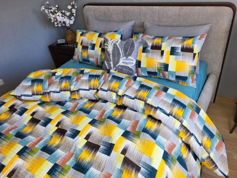 Постельное белье ранфорс-жатка интрига бирюза микс двуспальный евро