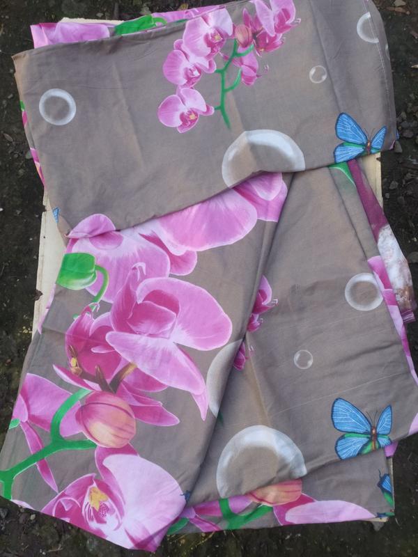 новый. развернут для измерения. Простынь 200 \215см. Пододеяльник 220\180 см. Наволочка 70\70 см. ( 2 штуки) Без застежек на запах Без ярлыка. Состав : хлопок и полиэстер.