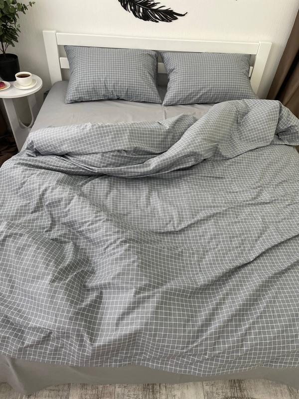 Постільна білизна ранфорс premium сірий у клітинку (полуторний,двоспальний,євро,сімейний)