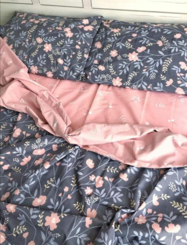 Комплект постельного белья с цветочками, серо-розовый, 100% хлопок, разные размеры