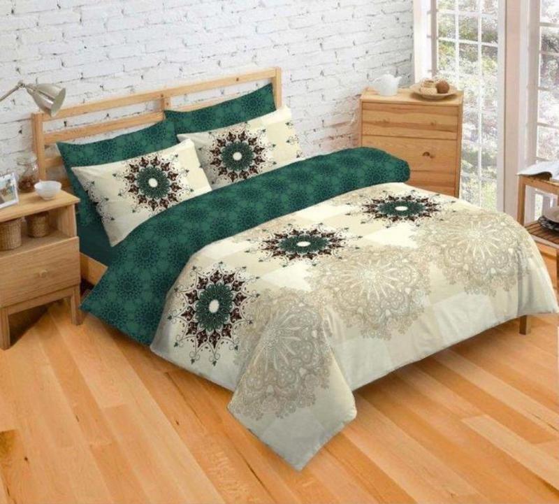 Комплект постельного белья, 100% хлопок, бежево-зеленый