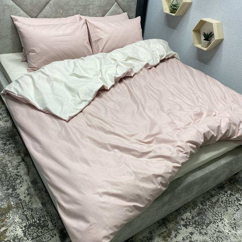 Набір постільної білизни / комплект постельного белья однотонный, персиковый + молочный, 1...