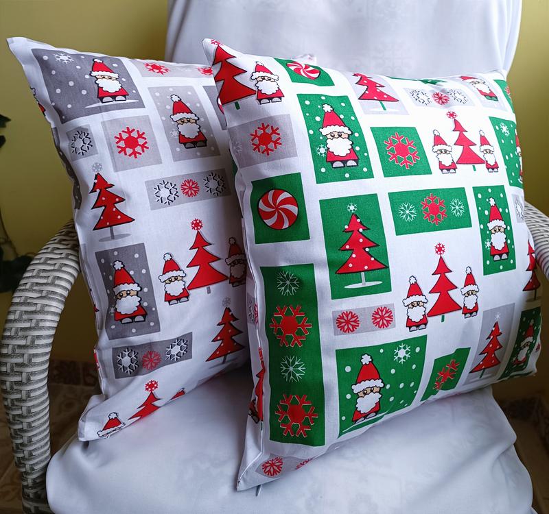 Набір новорічних бавовняних наволочок 35*35 см з Сантами чудово поєднуються між собою Призначення : для декора ліжка або можна спати на цих наволочках, бо вони з натуральної бавовни розмір 35*35 см ціна вказана за дві наволочки 35*35 см в наявності є декілька наборів! Склад тканини бавовна 100% Наволочки на потаємній блискавці! Доставка Укрпоштою або Новою поштою