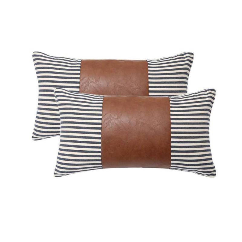 Цена указана за 2 шт. Наволочка в полоску со вставкой из эко-кожи. Комплект из 2ух. Со скрытой молнией. Материал: хлопок средней плотности и эко-кожа. Лот 60.5.