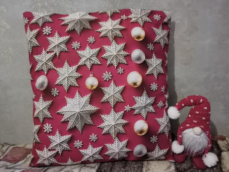 Новогодняя наволочка на декоративную, диванную подушку 40х40 см на молнии. Тканина ранфорс 5D. 100% бавовна. Молния спрятана под клапаном и ее не видно. Размер может быть другой: 35х35, 45х45, 50х50 см и т.д. Цену уточняйте. Размер всегда производит больший на 0.5-1 см для объема подушки. Например размер 40х40 будет 41х41 см.