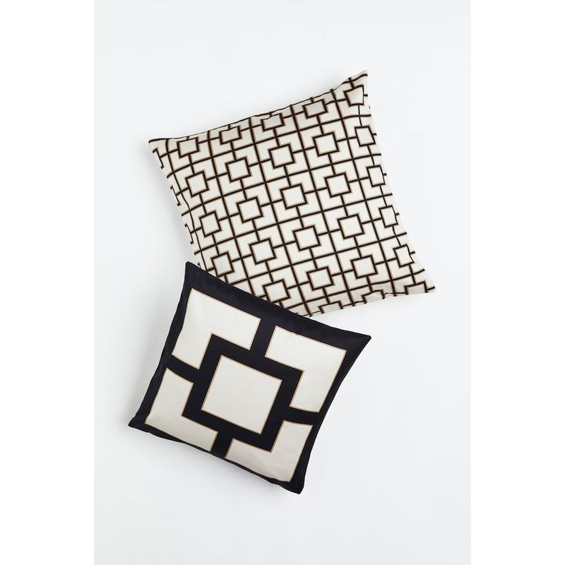 Набір з двох наволочок з м'якого бавовняного сатину з графічними візерунками. Потайна блискавка збоку. Різні розміри. 50х50 та 40х40 Світло-бежевий/Темно-бежевий/Чорний Бавовна 100% нструкції з прання та сушіння За потреби використовуйте лише відбілювач без хлору Сушити в пральній машині на середній швидкості Підлягає сухому чищенню Машинне прання при 40° Гладити при високій температурі Сток
