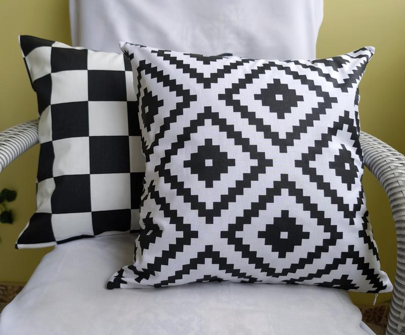 Набір з двох Наволочок 40*40 см з чорно-білими візерунками ,відмінно виглядає і підходить один одному Призначення для декора ліжка або можна спати на цих наволочках,бо вони з натуральної тканини розмір 40*40 см чорно білі ромби та чорно білі шахи Ціна вказана за дві наволочки ! Тканина бавовна 100% НАВОЛОЧКИ НА БЛИСКАВЦІ! в наявності є декілька наборів! Прання при температурі до 30 градусів,рідким миючим засобом без відбілювача,на делікатному режимі доставка укрпоштою або новою поштою