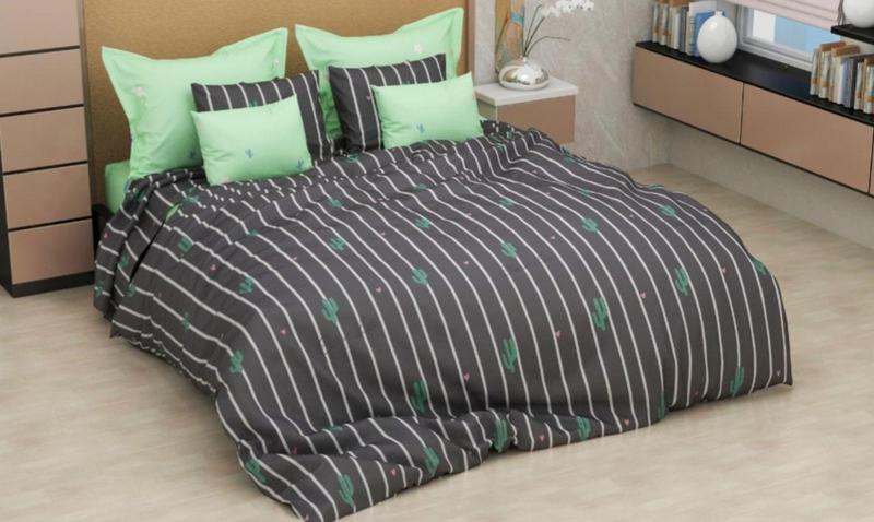 Євро пододеяльник 200х220 растения кактусы полоски серый салатовый бязь голд люкс виталина