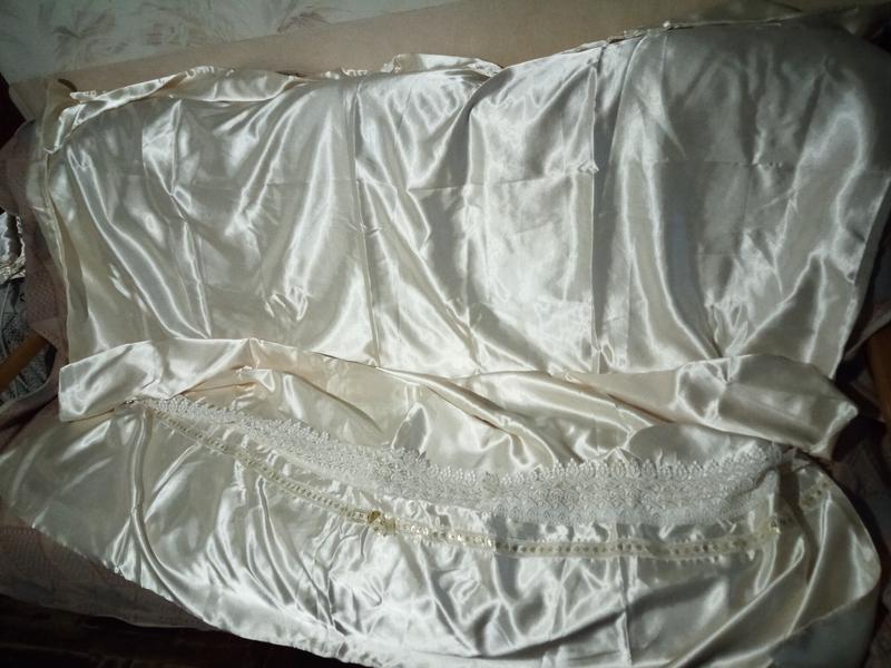 190 на 205.плотный атлас. под кружевами молния молочного цвета великолепное состояние практически новое давно лежит в шкафу сделаю дополнительно фото пишите спрашивайте. отвечаю в течении суток пересылка после оплаты=замовлення и беспечная оплата есть у меня много разных аксессуаров в моих объявлениях покупая несколько вы экономите на пересылке