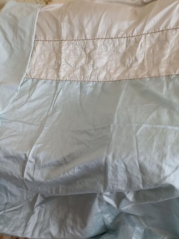 Підковдра-покривало блакитного кольору з кремовою вставкою Розмір 196*196 Зовні поліестер, зворотня сторона полібавовна Без нюансів