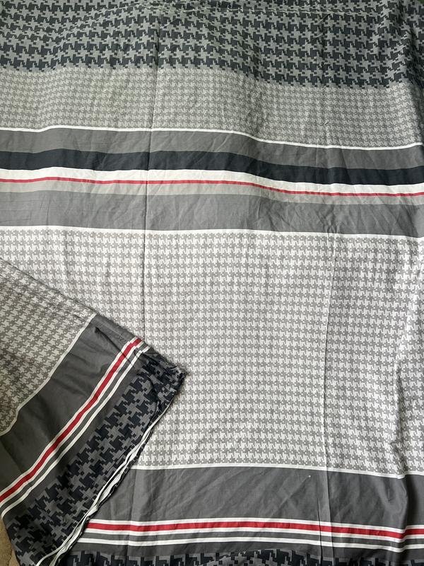 Підковдра бавовняна зі стильним принтом, застібка змійка. Розмір 190*190 Є нюанс на останньому фото- з однієї сторони в низу підковдри є маленька дирочка. В іншому без нюансів.