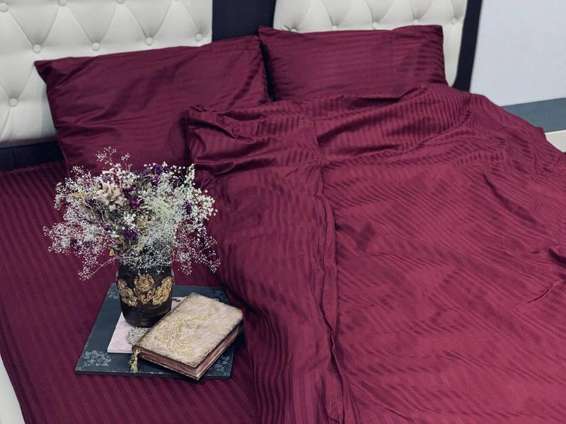 Производитель: Комфорт текстиль (Украина) Плотность ткани: 145 г/м кв Состав ткани: 100% хлопок Особенность пододеяльника: на молнии Особенности наволочек: на запах, без "ушек", размер 50х70 или 70/70 на выбор Страйп сатин-это абсолютно натуральная ткань из качественной хлопковой нити, сочетающая свойства сатина и жаккарда. В переводе с английского слово «stripes» означает «полосы», поэтому ткань имеет двухсторонний рисунок - чередующиеся блестящие и матовые полосы. Ткань однотонная и в этом ее преимущество- лаконичность никогда не выходит из моды и подходит под любой интерьер. А потому такое белье универсальное. При этом полосатость «рисунка» придает объемности и шика. Страйп сатин - это ткань, обладающая рядом достоинств: -роскошный внешний вид, оригинальный дизайн; -мягкая и приятная на ощупь текстура; -натуральность состава: только 100% хлопок, без примесей; -высокая плотность - выше, чем у обычного сатина или любой другой ткани; -практичность и долговечность - высокая плотность делает материал максимально износостойким и постель служит не один год; -стойкость оттенка - нити перед скручиванием хорошо прокрашивают, а потому текстиль в результате получается не только ярким, но и очень стойким к выгоранию. Не линяет страйп сатин и во время стирки - главное придерживаться правил ухода за материалом, и белье прослужит не теряя цвета и формы годы -прекрасная теплопроводность - на такой постели комфортно в любой сезон; -стойкость формы - ткань не меняет своих форм, не растягивается даже после многочисленных стирок. -так же белье из страйп сатина не вызывает аллергий, а потому отлично подходит для детских кроваток и для людей с чувствительной кожей. -почти не мнется Как ухаживать за страйп сатином: Ткань обладает устойчивостью к деформации и износу только при условии соблюдения правил по уходу, заявленных производителем. Чтобы материал не утратил первоначального вида и долго радовал вас, учитывайте следующие рекомендации: Рекомендации по уходу за постельным бельем из страйп сатина: Не рекомендуется использовать изделие без предварительной стирки! • первая стирка при t воды 30°C, отжим 400-500 об; • последующие стирки при t воды 40°-60°C, отжим 500-600 об; • стирать в вывернутом виде; • барабан стиральной машины заполнять бельем на 50%, для обеспечения эффективной, бережной стирки, легкого полоскания; • применять стиральные порошки для цветных тканей • сушить белье сразу после стирки; • гладить при t 200°С Постельное белье из страйп сатина это всегда хорошее приобретение или прекрасный подарок для Ваших близких! **ВОЗМОЖЕН пошив по ИНДИВИДУАЛЬНЫМ размерам ***В зависимости от настроек монитора, оттенок может незначительно отличаться