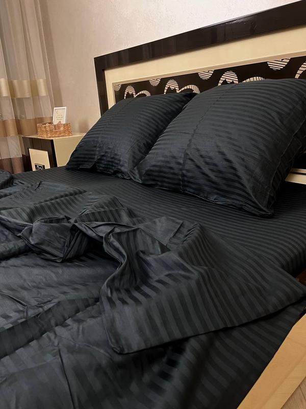 Постельное белье страйп сатин черная 🖤🔥, простынь на резинке, простынь на резинке